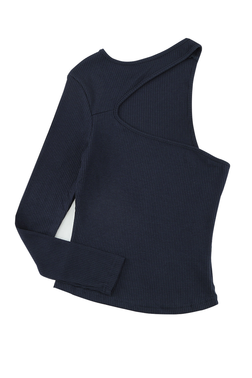 Pattern: Solid Features: Cutout, ribbed Neckline: One-shoulder Stretch: Slightly stretchy Product measurements: S: bust 32 in, waist 28 in, sleeve...