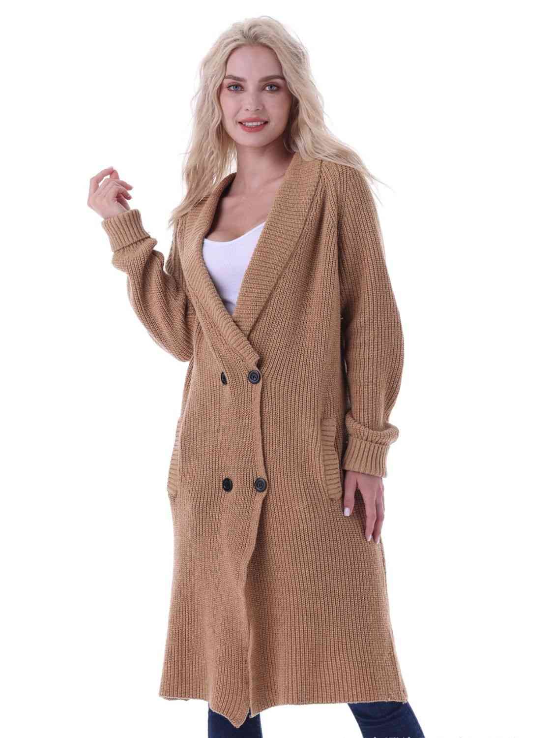 Double-Breasted Longline Cardigan with Pockets