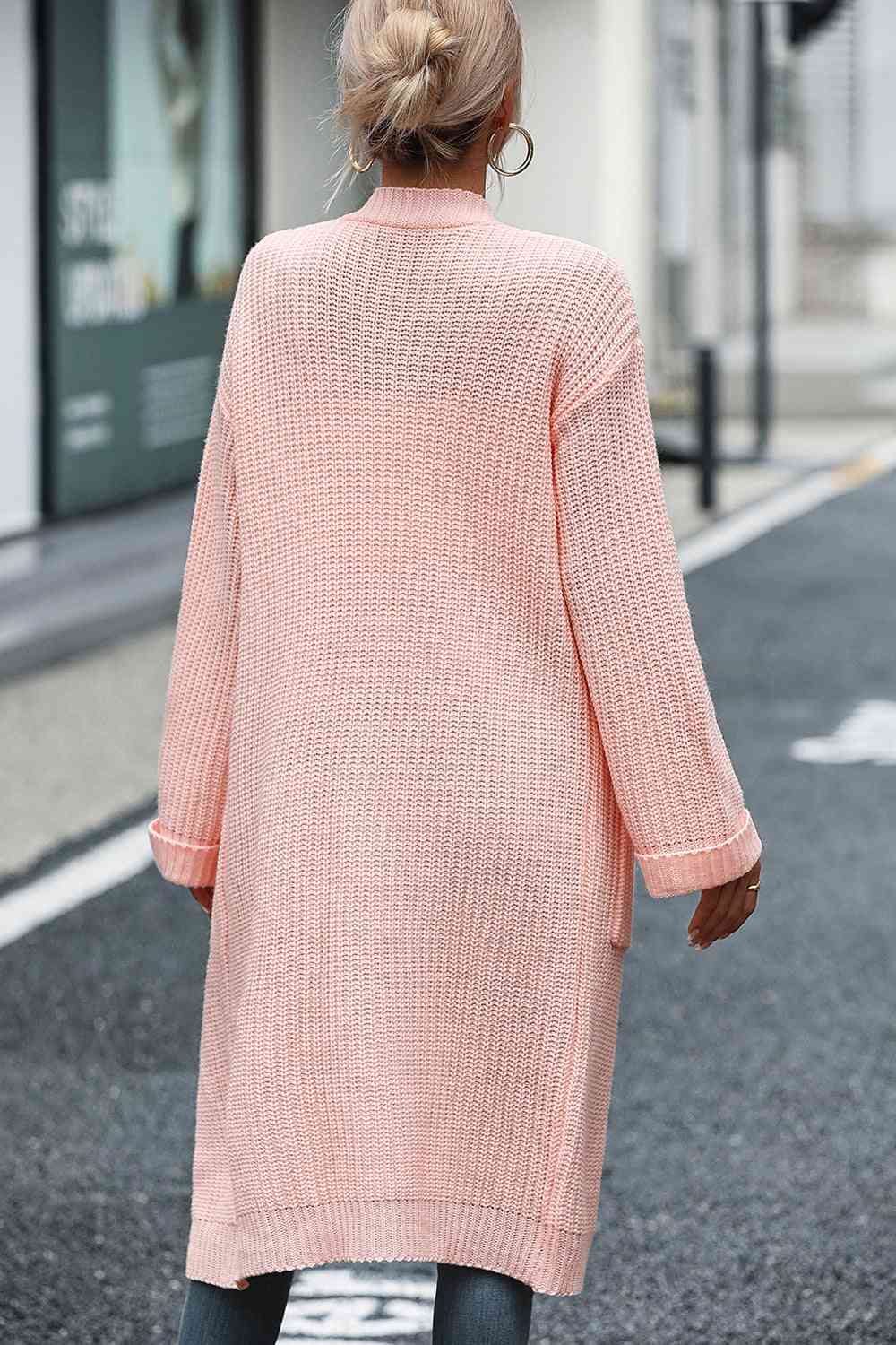 Dropped Shoulder Long Sleeve Cardigan with Pocket