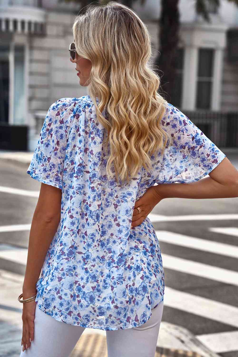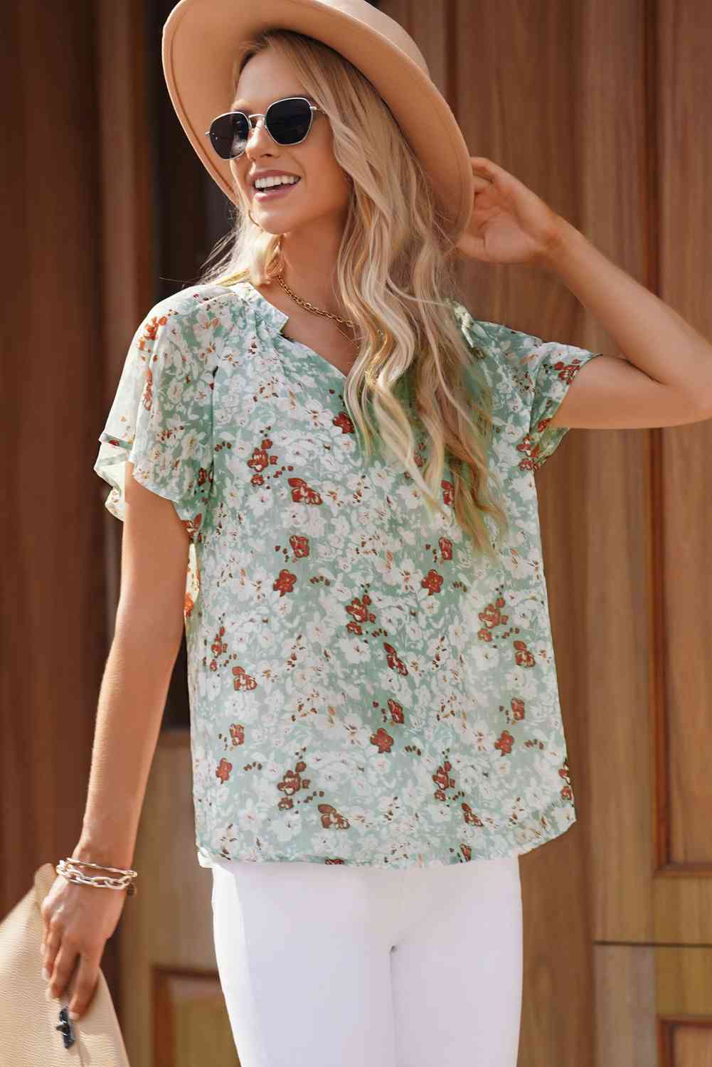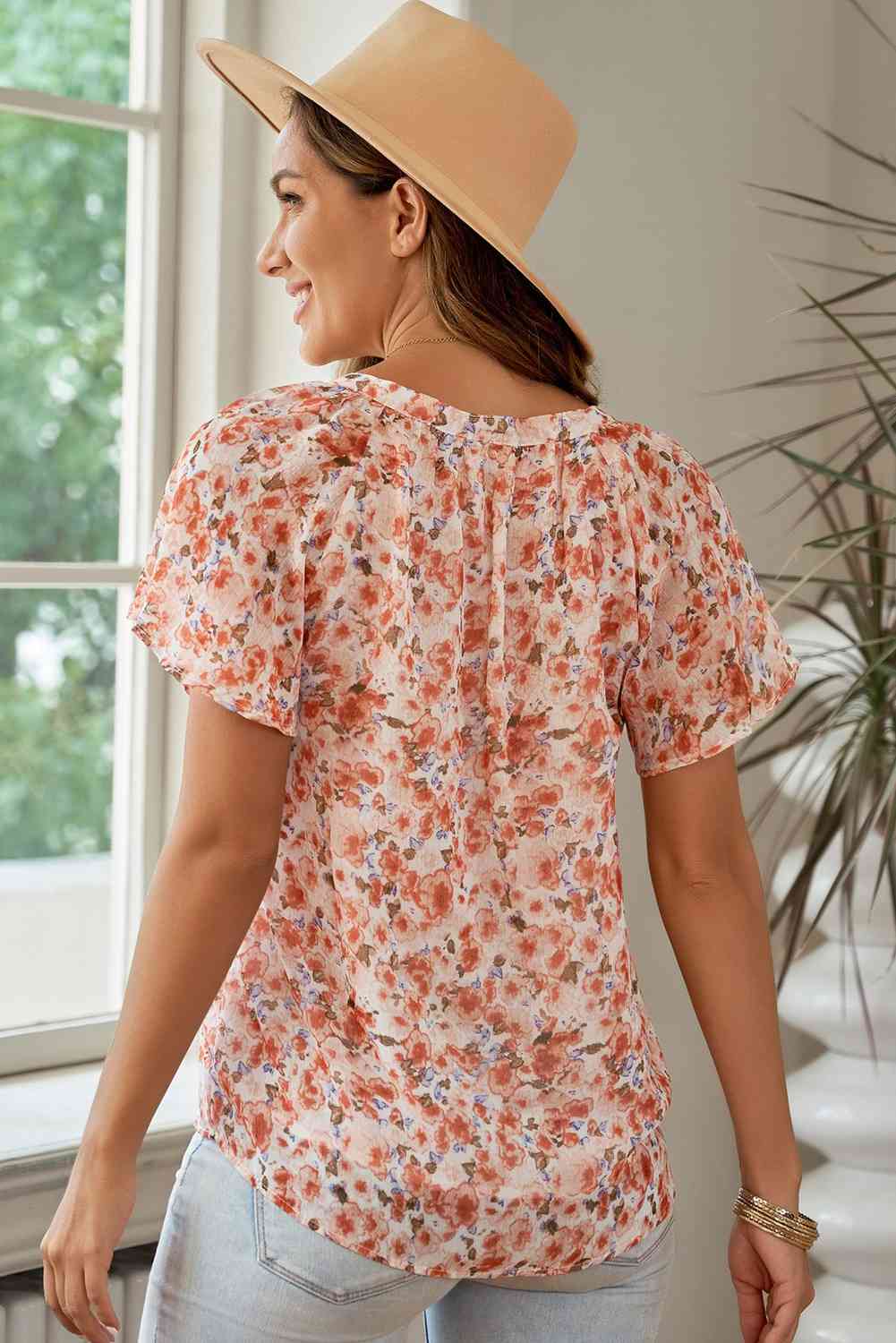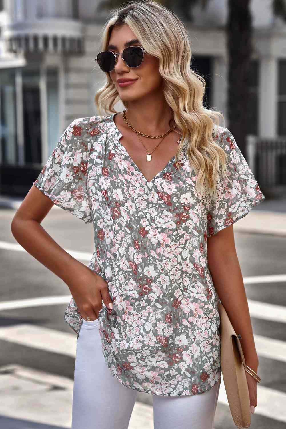 Pattern type: Floral, Leopard Style: Casual Features: Basic style Neckline: V-neck Length: Long Sleeve length: Short sleeves Sleeve type: Flutter...