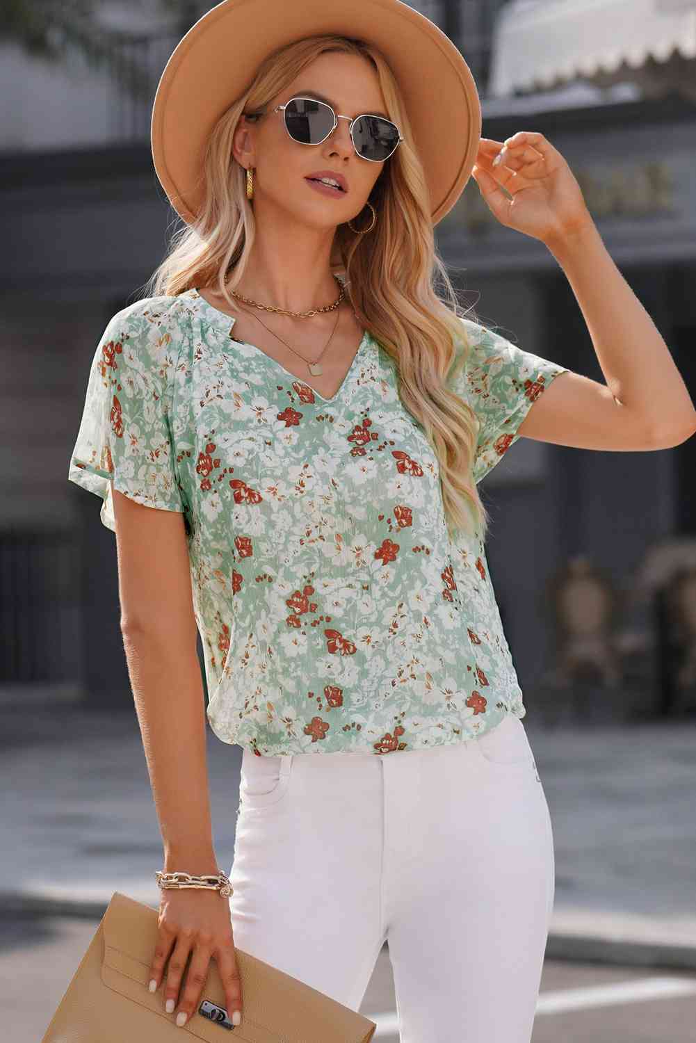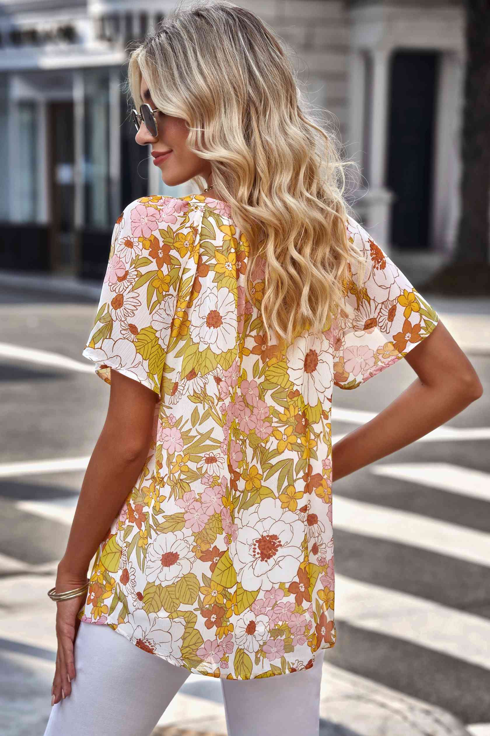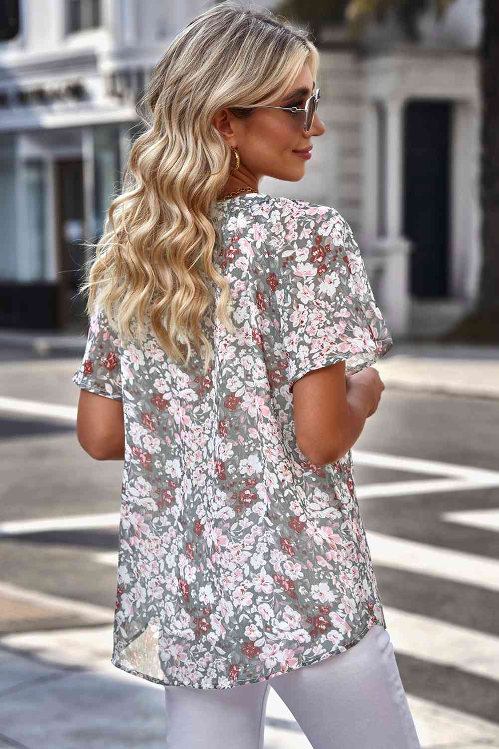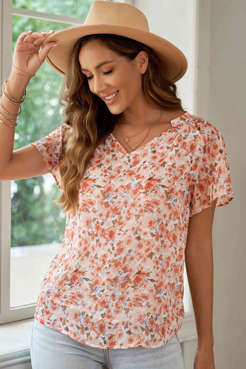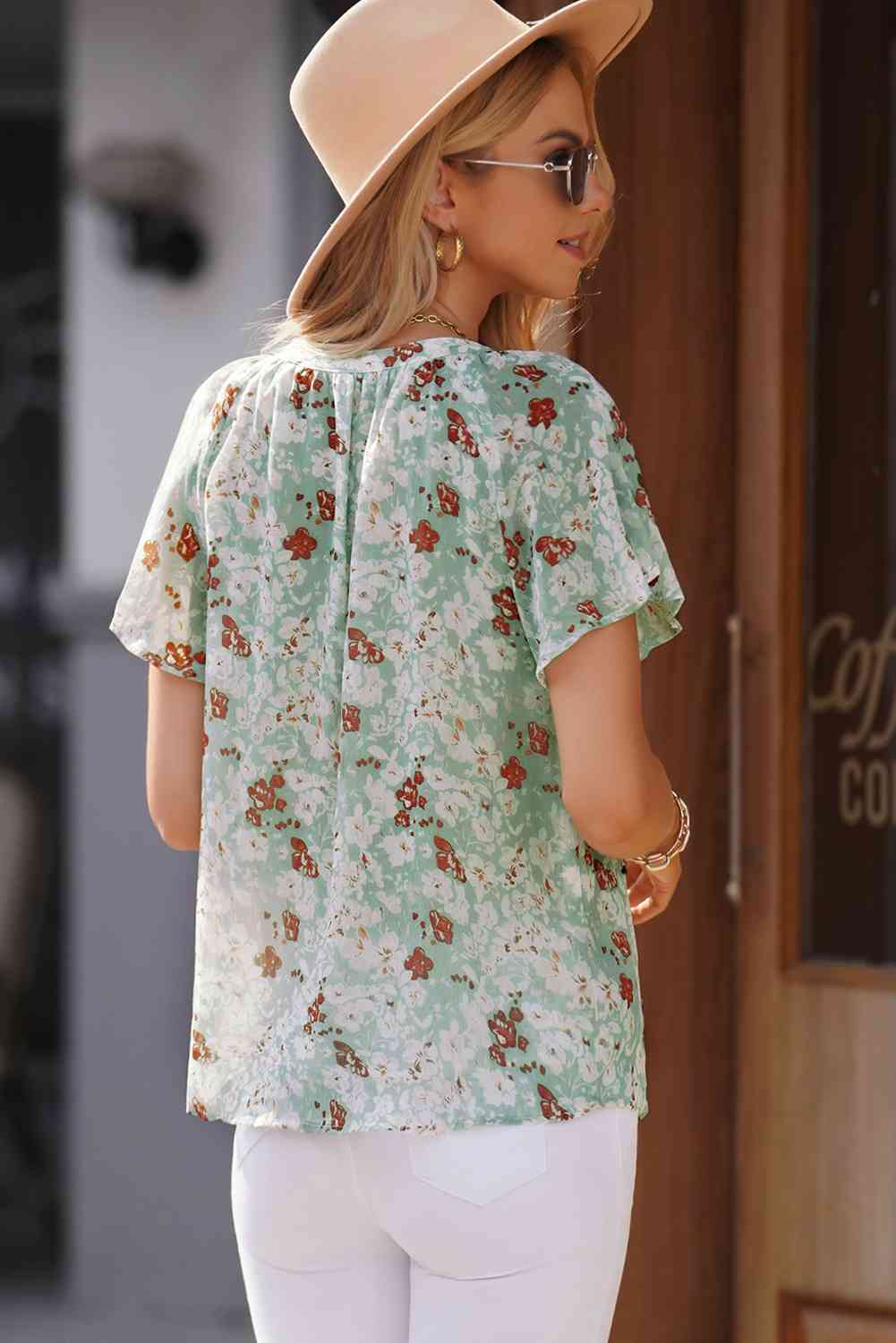 Pattern type: Floral, Leopard Style: Casual Features: Basic style Neckline: V-neck Length: Long Sleeve length: Short sleeves Sleeve type: Flutter...