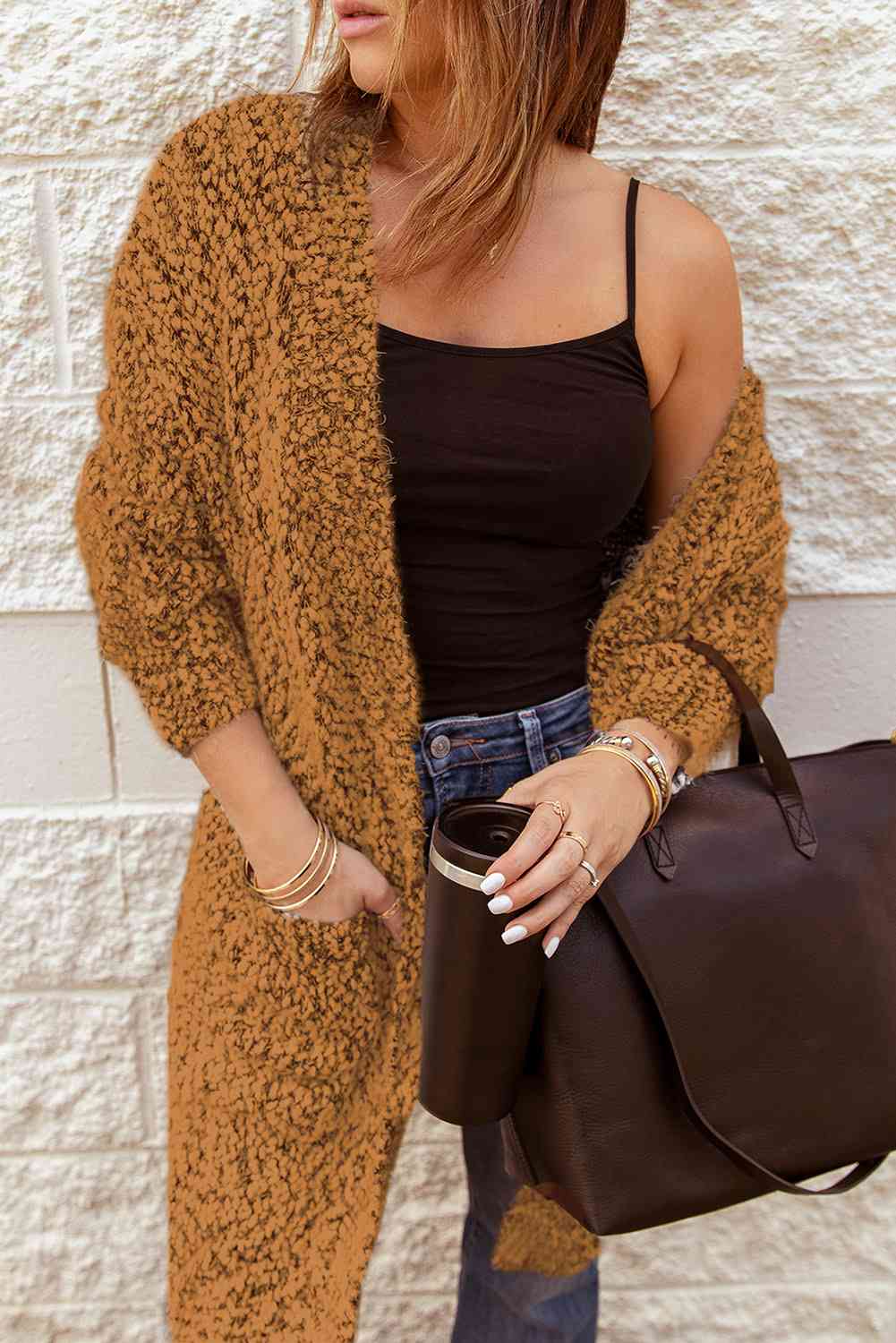 Fuzzy Popcorn Knit Open Front Longline Cardigan