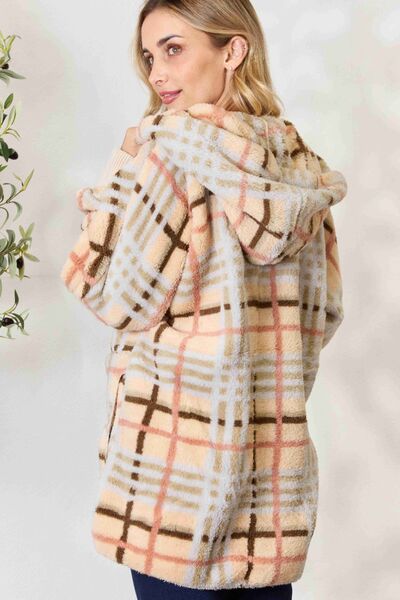 H&T Checked Faux Fur Hooded Jacket