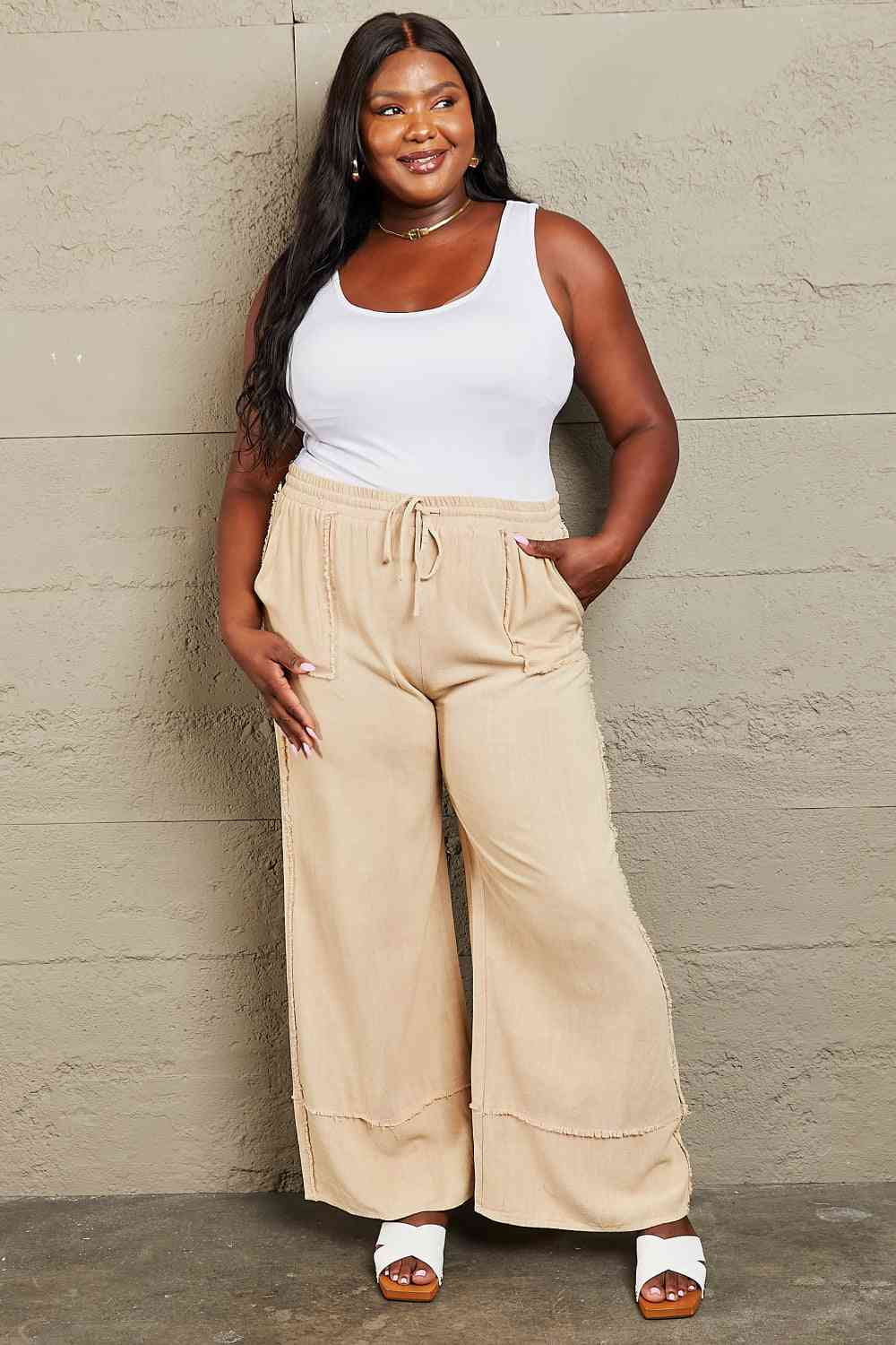These pants feature an elastic waist for a custom fit and raw hemming details for a trendy touch. The pigment vintage wash technique gives each pair a distinctive color, texture, and distressed look, making them truly one-of-a-kind. Embrace the beauty of individuality with these pants, as the intentional variations in shades and textures are a result of the unique dye and washing process, ensuring you stand out in a crowd.