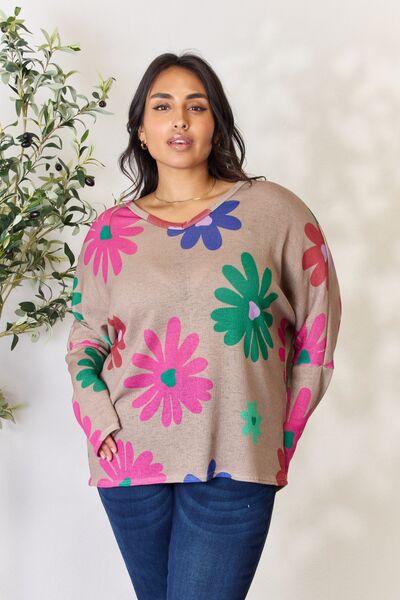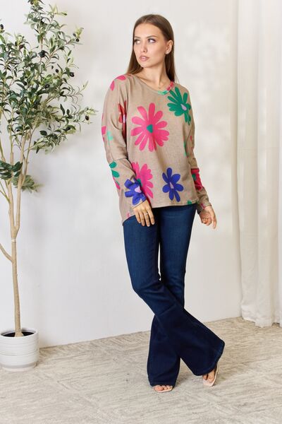 This top is a beautiful and feminine choice for any occasion. Its vibrant floral print and flattering V-neckline make it a stylish and eye-catching piece. The long sleeves add an extra touch of sophistication, making it perfect for both daytime and evening looks.
