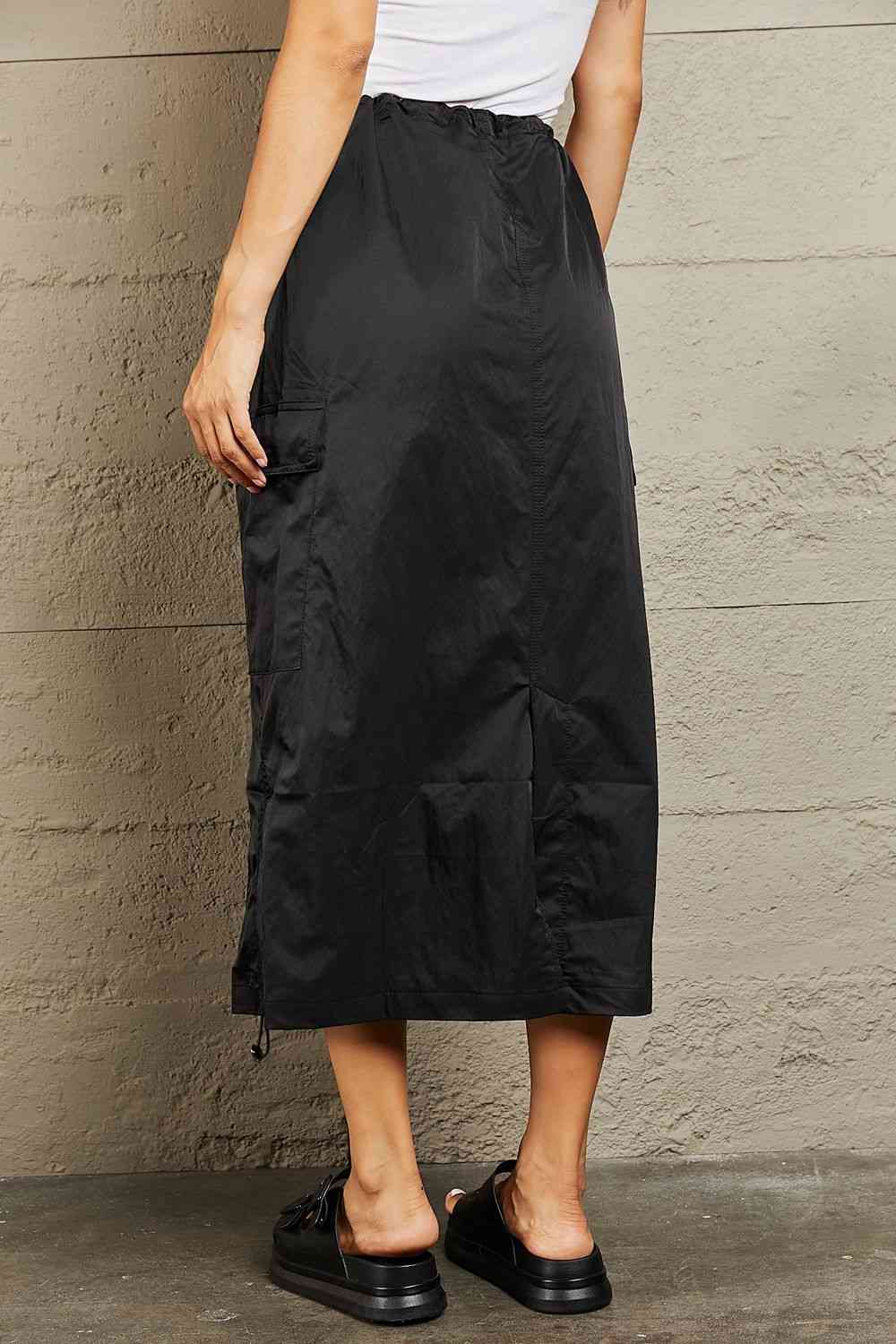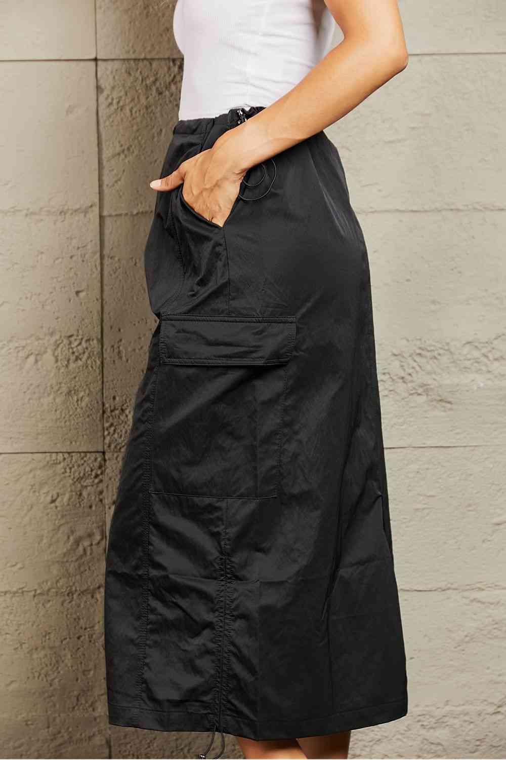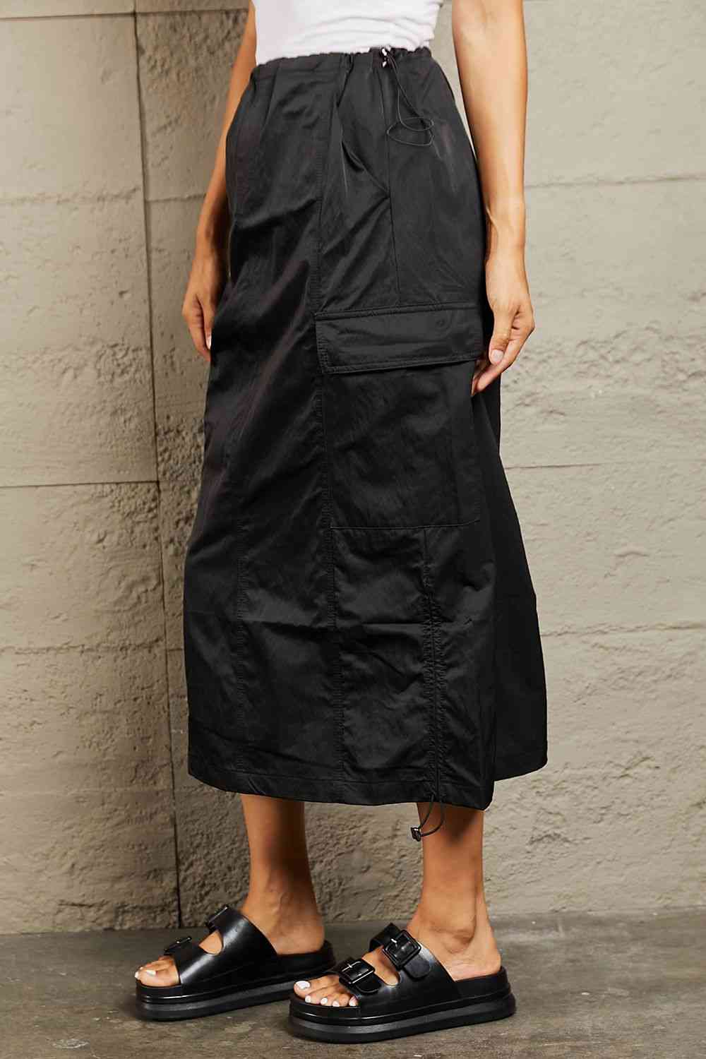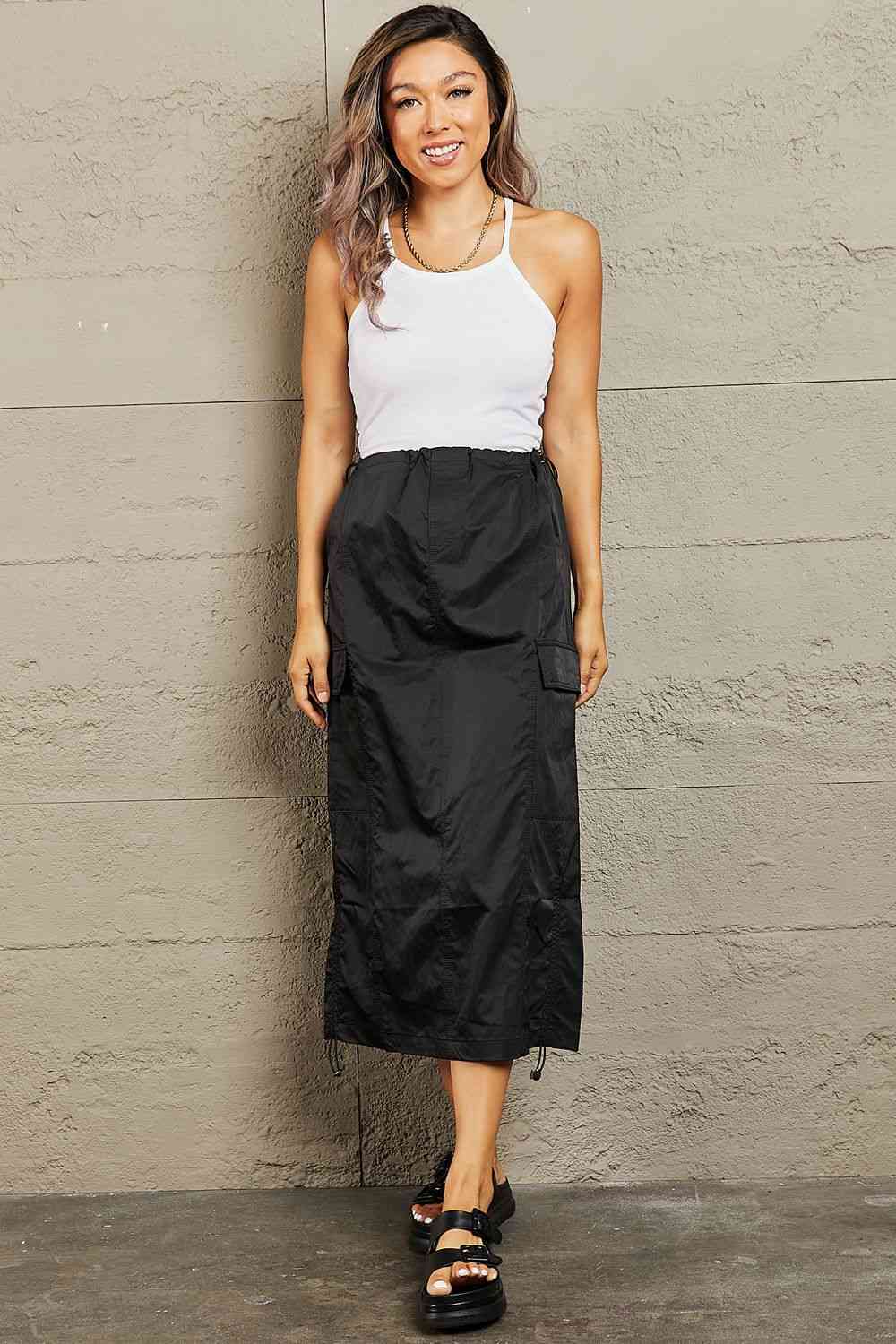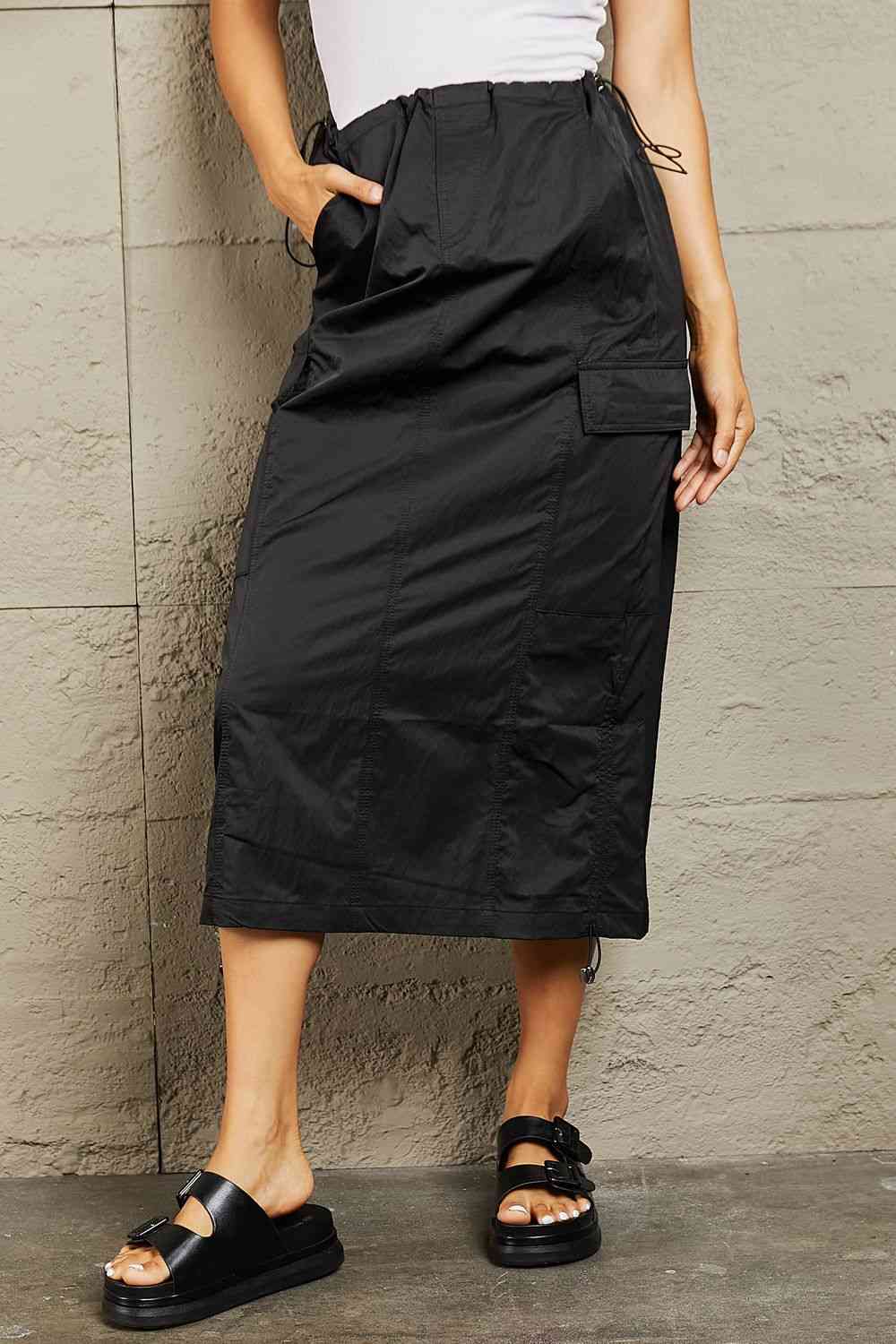 HYFVE Just In Time High Waisted Cargo Midi Skirt in Black