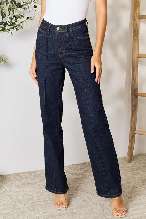 These beautifully tailored pants are designed to elevate your fashion game. The high waist cinches your figure for a flattering silhouette, while the front seam and dart detailing add a touch of elegance and structure to the wide leg design.
