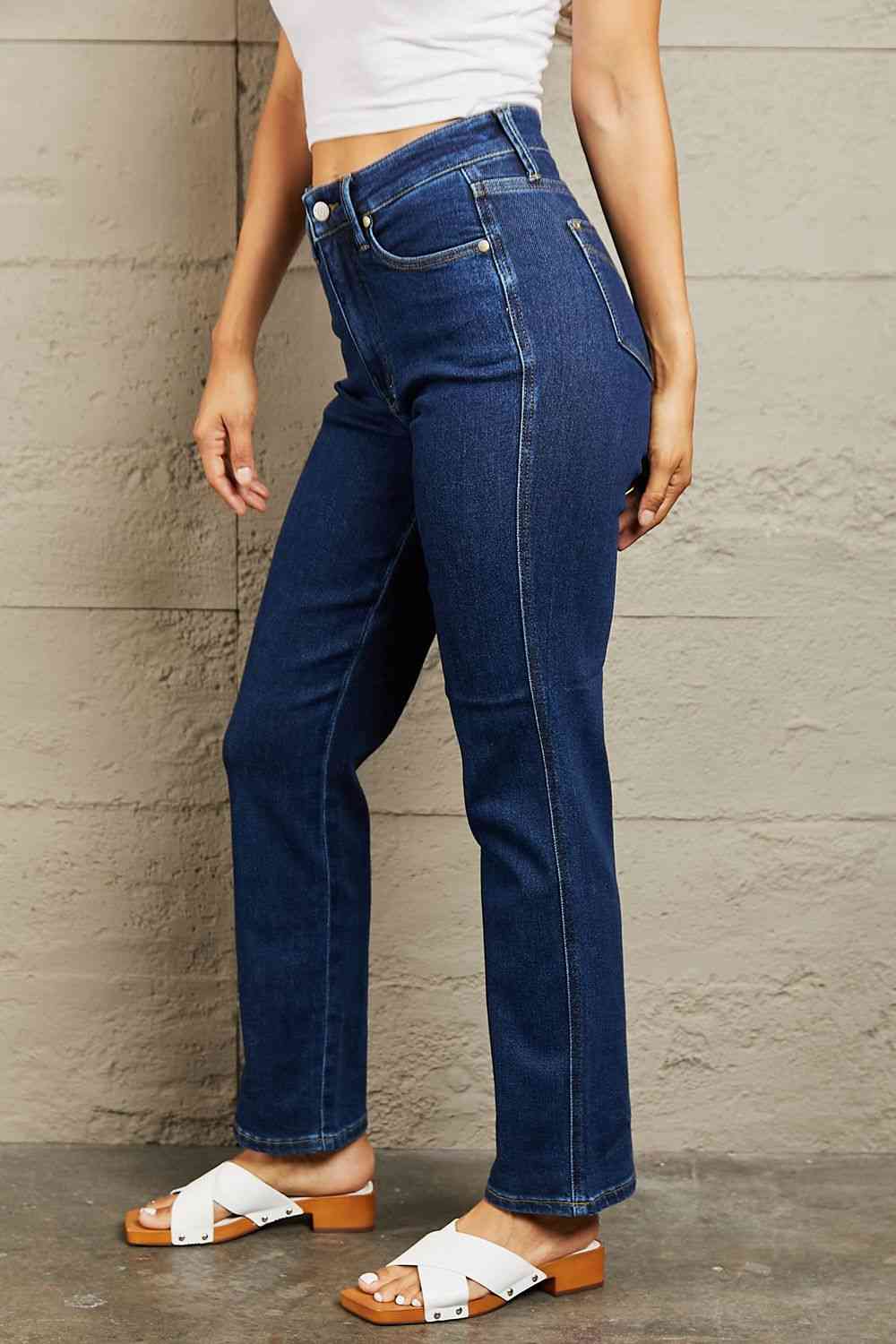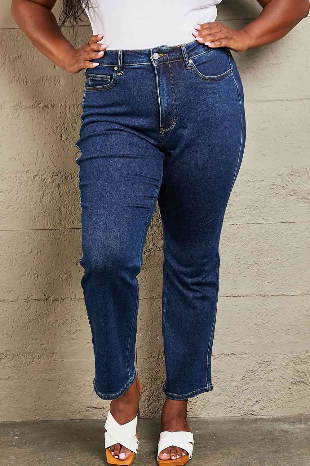 These jeans offer a timeless look that effortlessly complements any outfit. The high-waisted design not only adds a trendy touch but also provides excellent tummy control for a flattering silhouette. Whether you're heading to the office, a casual outing, or a night out with friends, these jeans are a versatile wardrobe essential that will keep you feeling confident and chic all day long. Embrace fashion and functionality with these must-have classic straight jeans.