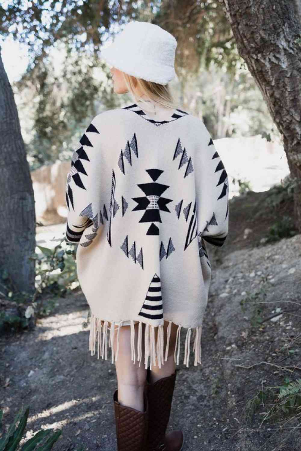 Tap into your wanderlust with this oversized cardigan. The stark contrast in the geometric pattern inspires creativity for the artist in you. With a relaxed fit, this cardigan keeps a cozy and casual vibe perfect for sitting by the campfire, cuddling up on the couch, or catching up with friends.