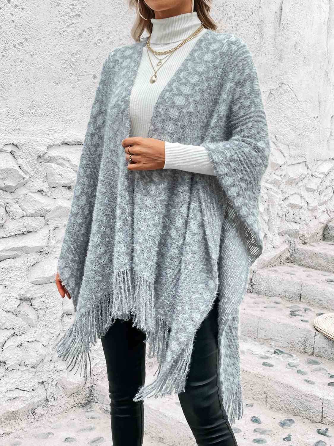 Features: Fringe Stretch: Moderate stretch Material composition: 68% acrylic, 32% polyester Care instructions: Machine wash cold. Tumble dry low. Imported...