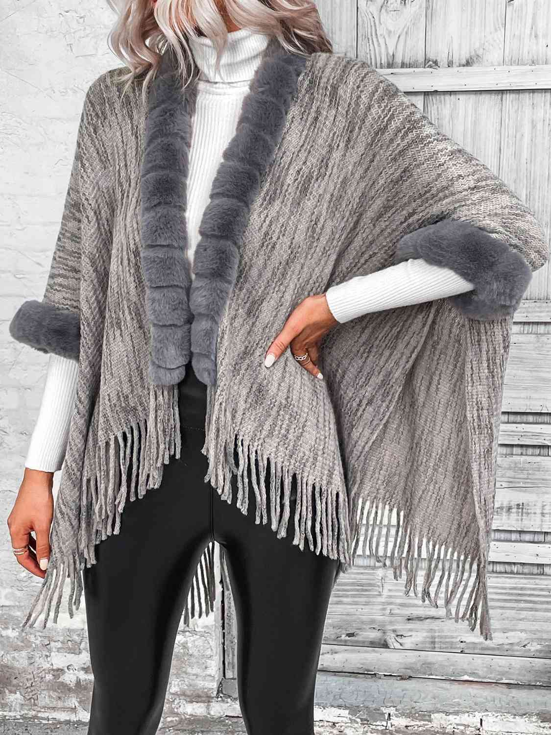 Features: Fringe Stretch: Moderate stretch Material composition: 68% acrylic, 32% polyester Care instructions: Machine wash cold. Tumble dry low. Imported...