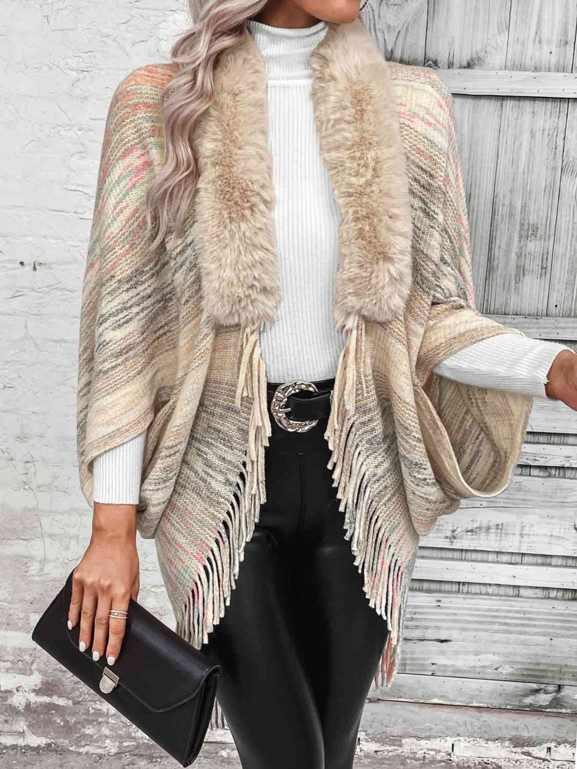 Features: Fringe Stretch: Moderate stretch Material composition: 68% acrylic, 32% polyester Care instructions: Machine wash cold. Tumble dry low. Imported...