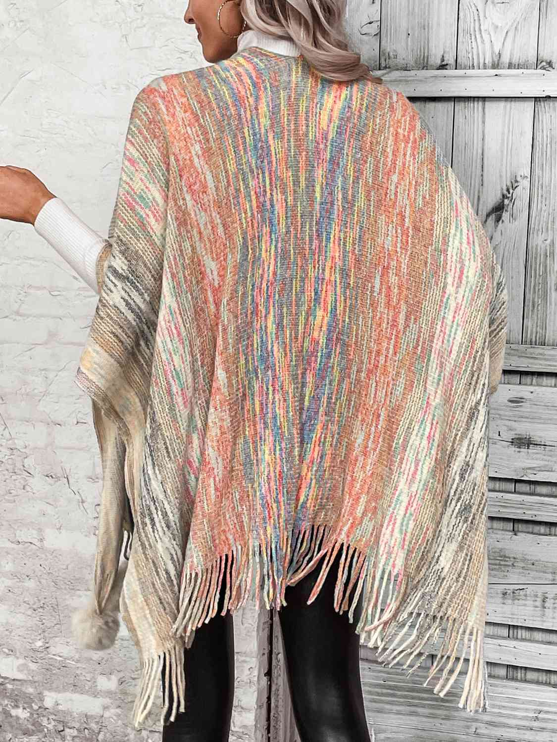 Features: Fringe Stretch: Moderate stretch Material composition: 68% acrylic, 32% polyester Care instructions: Machine wash cold. Tumble dry low. Imported...