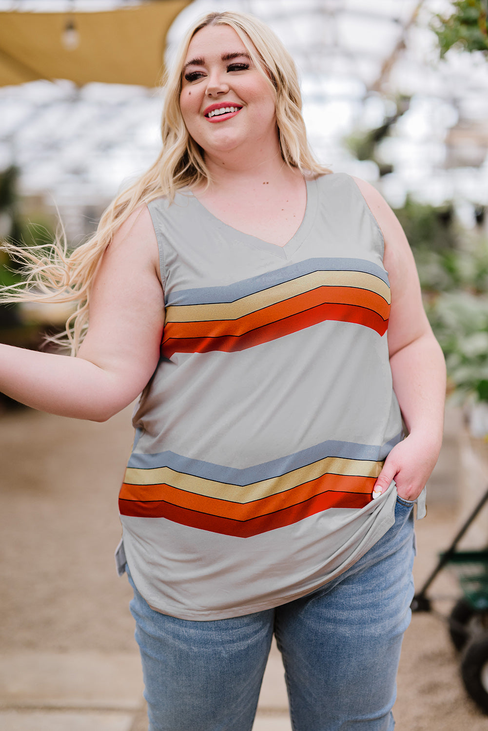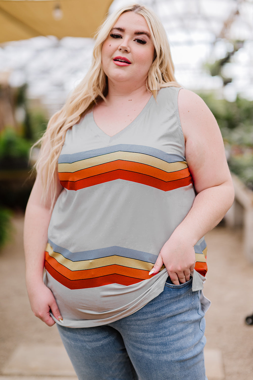 Plus Size Printed V-Neck Tank