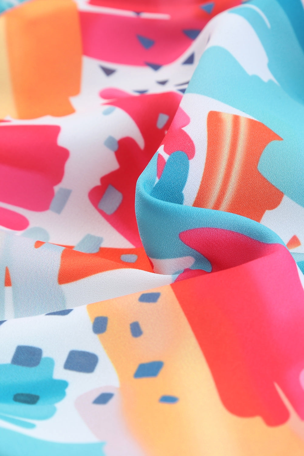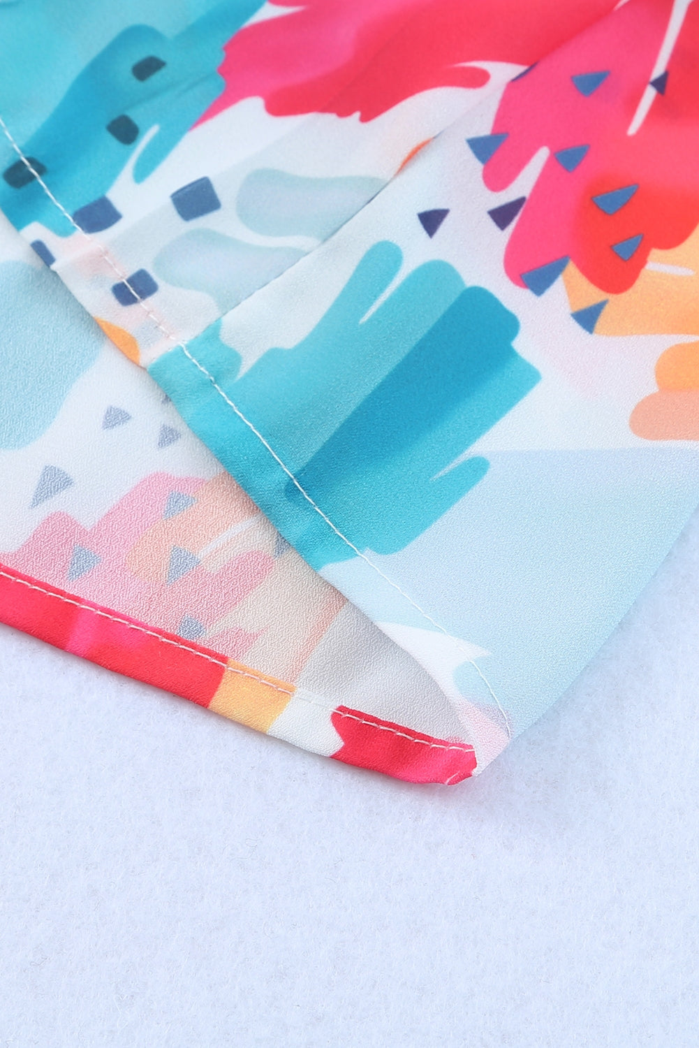 Pattern type: Multicolored Style: Casual Features: Ruffle Neckline: Round neck Length: Long Sleeve length: Cap sleeves Sleeve type: Flutter sleeves...