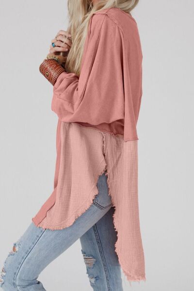 Santa Graphic Exposed Seams Round Neck Blouse