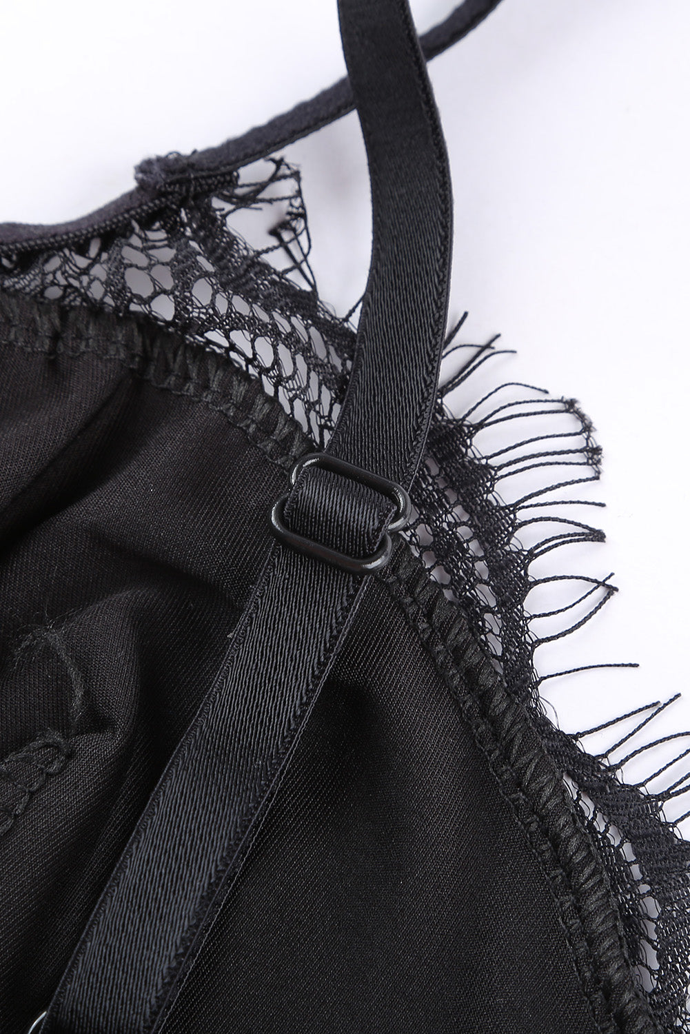 Fit Type: Fitted Pattern: Leopard Feature: Lace center, patchwork Details: Sheer lace center, eyelash lace scalloped trim, adjustable spaghetti straps,...