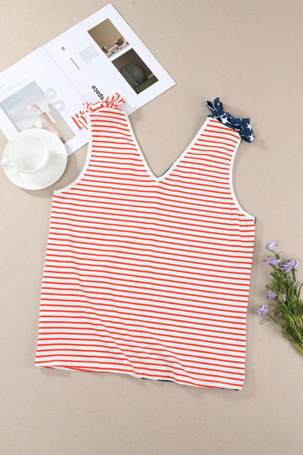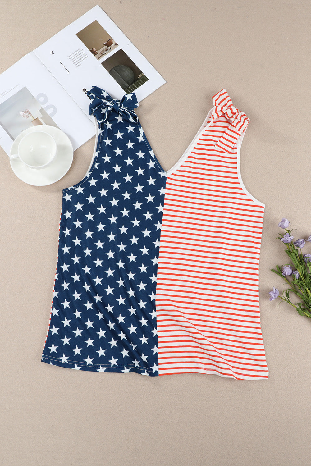 Pattern type: US flag Style: Casual Features: Tie Neckline: V-neck Length: Regular Sleeve length: Sleeveless Sleeve type: Sleeveless Sheer: No...