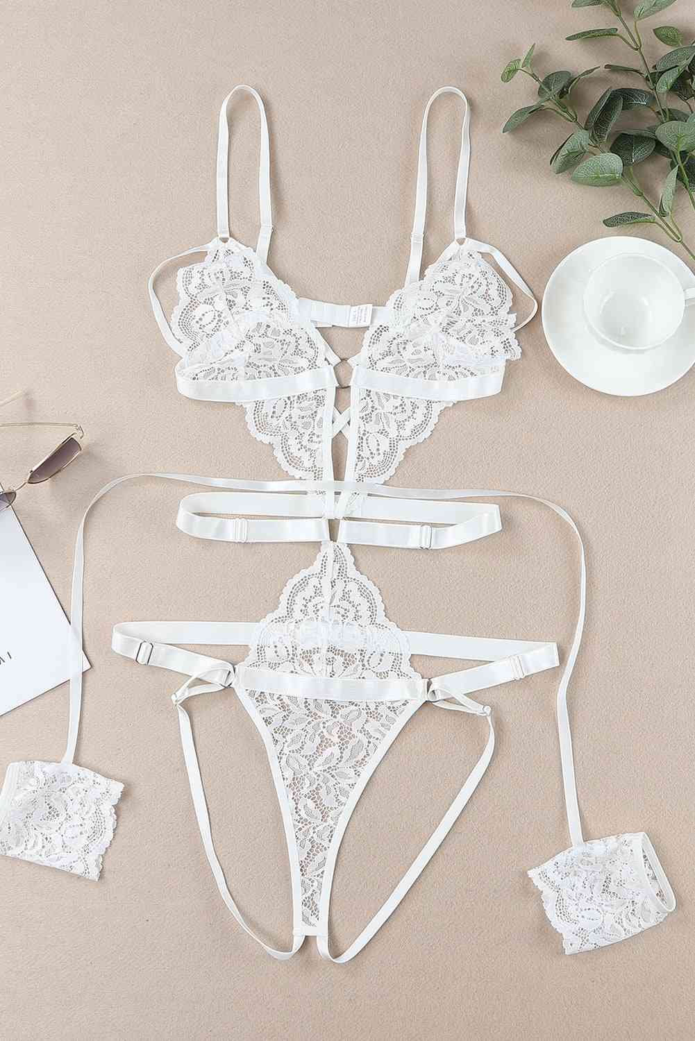 Strappy Teddy Lingerie with Wrist Bands