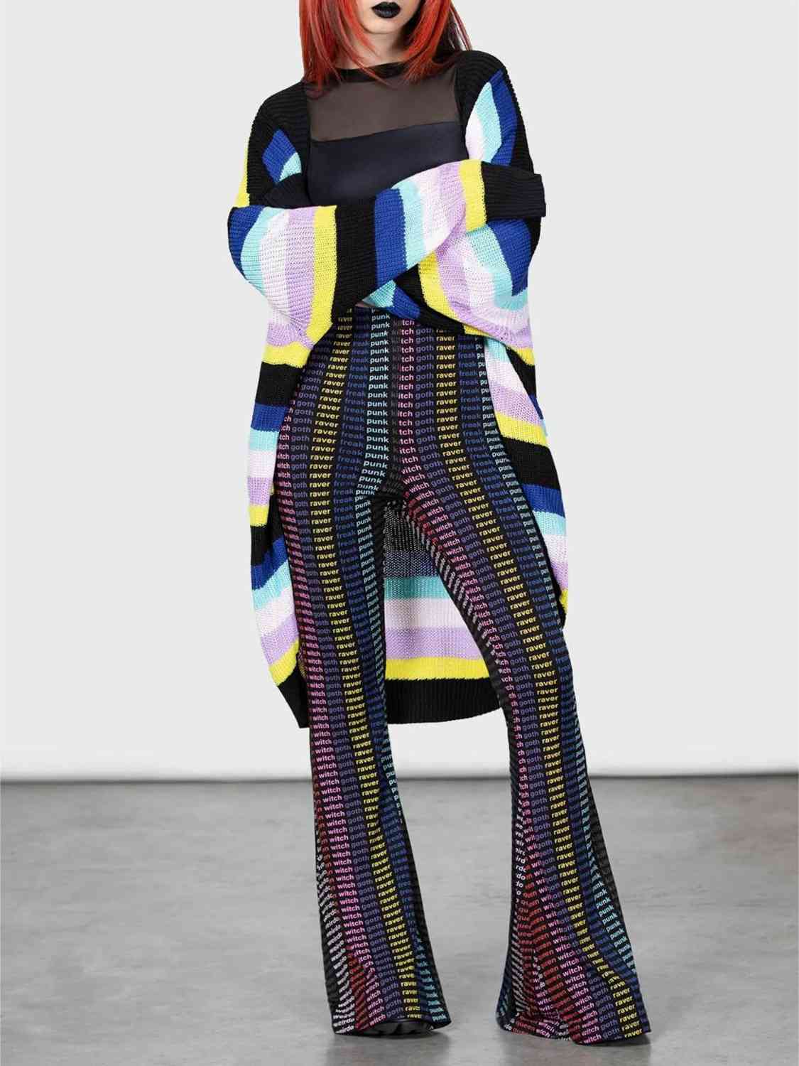 Striped Open Front Long Sleeve Cardigan