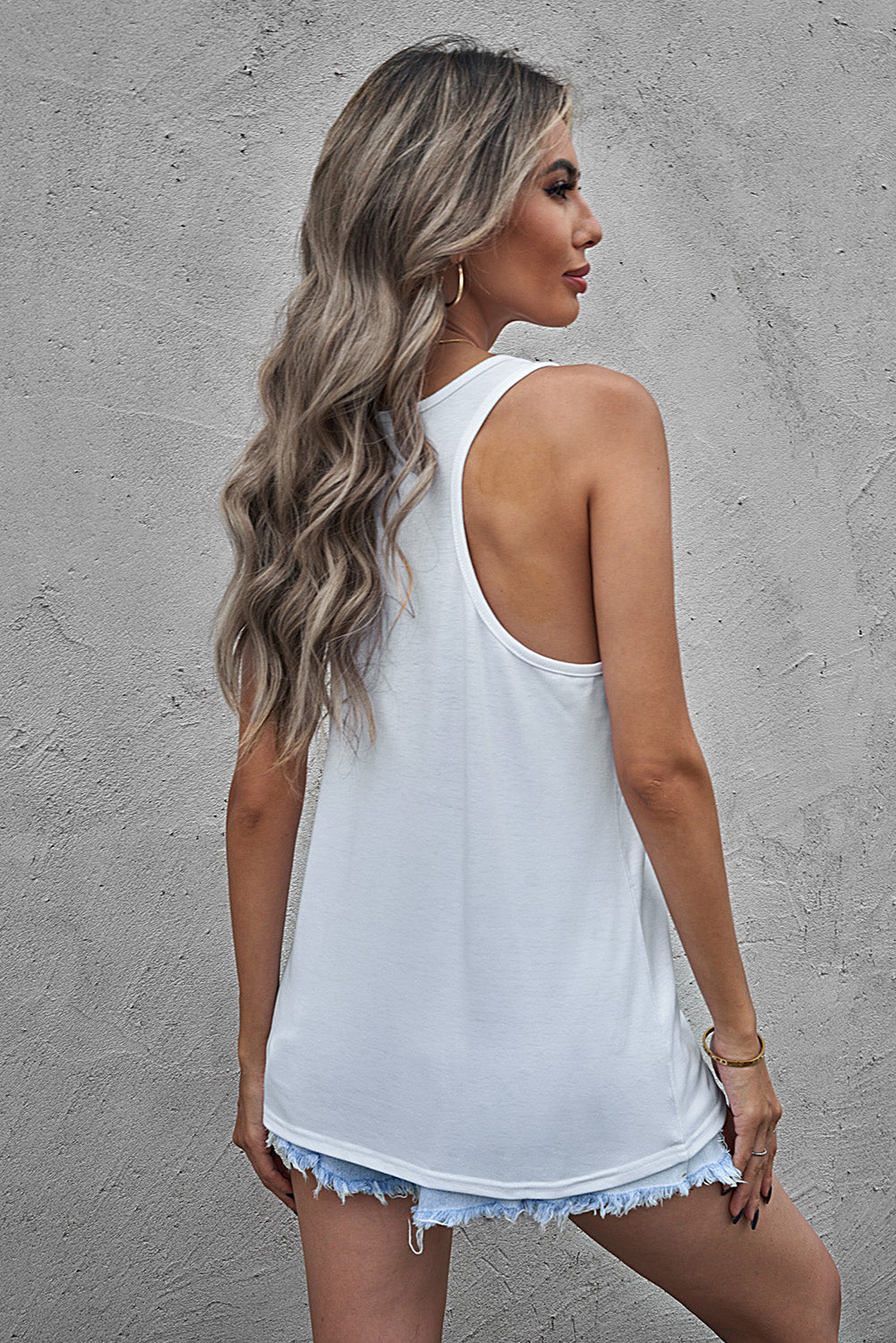 Sizing category: Regular Pattern type: Graphic Style: Casual, chic Features: Basic style Neckline: Scoop neck Length: Regular Sleeve length: Sleeveless...