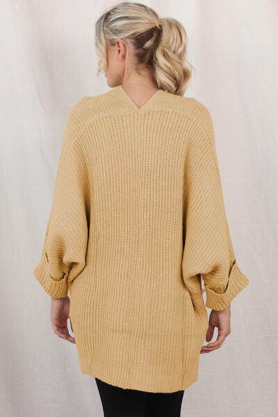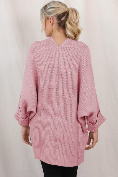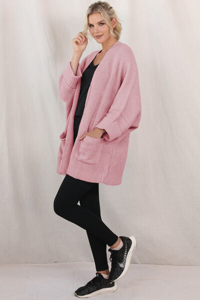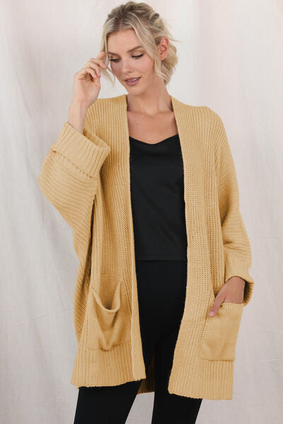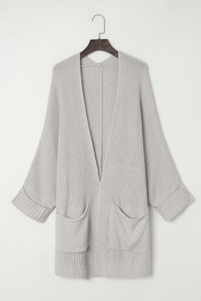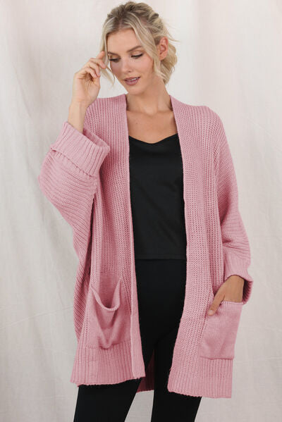Waffle-Knit Long Sleeve Cardigan with Pocket