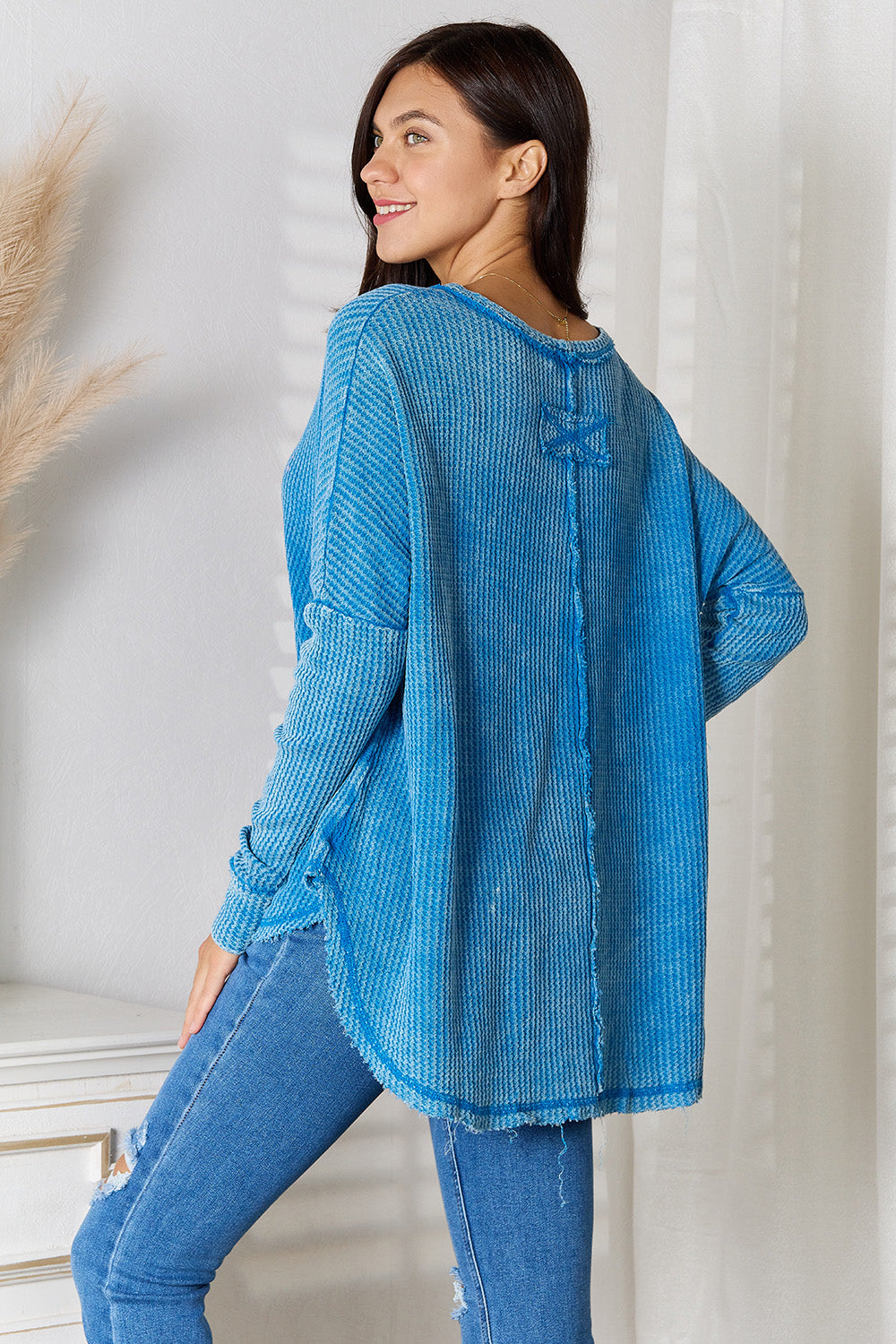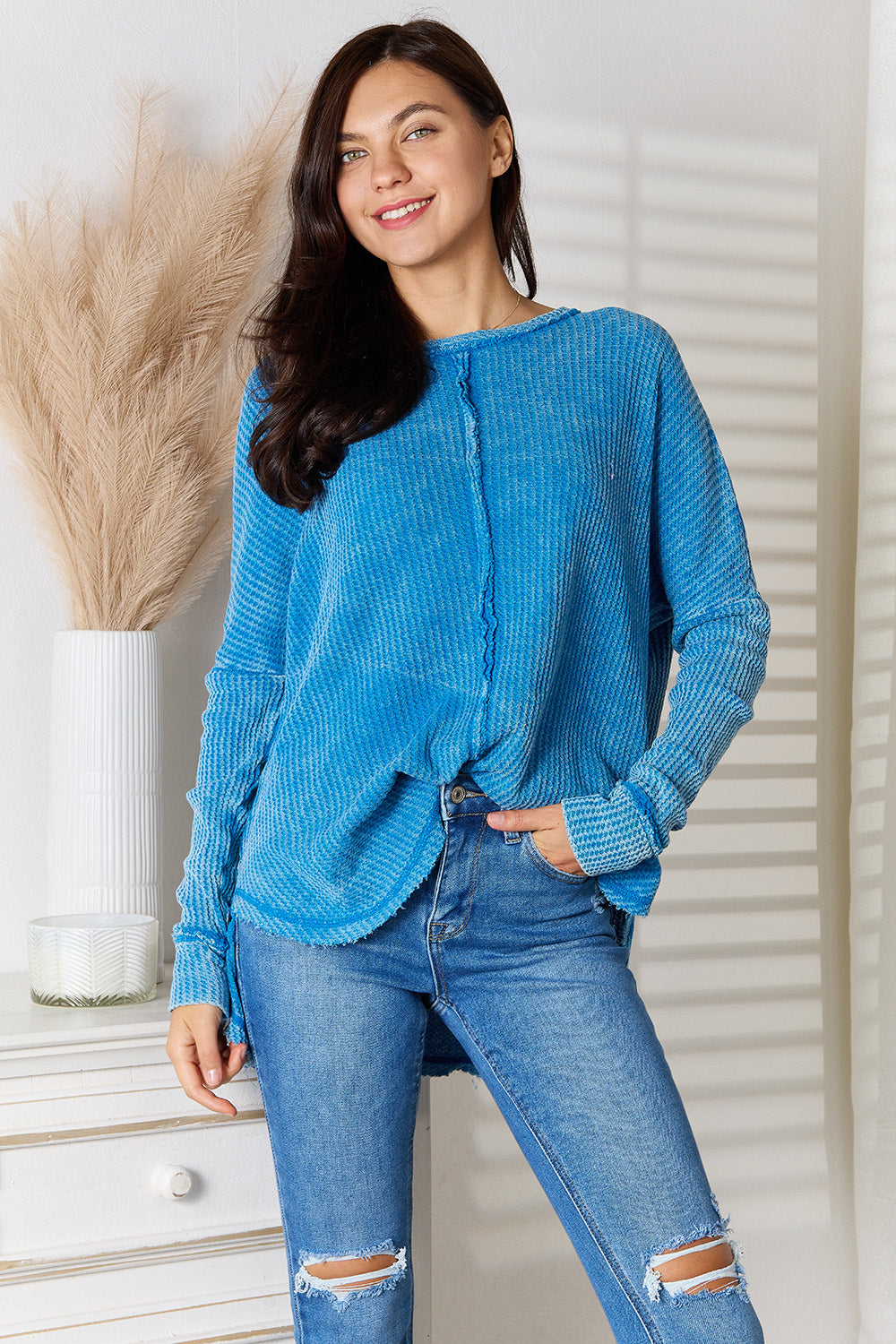 The Center Seam Waffle-Knit Top is a cozy and stylish addition to your closet. The waffle-knit texture adds visual interest,...