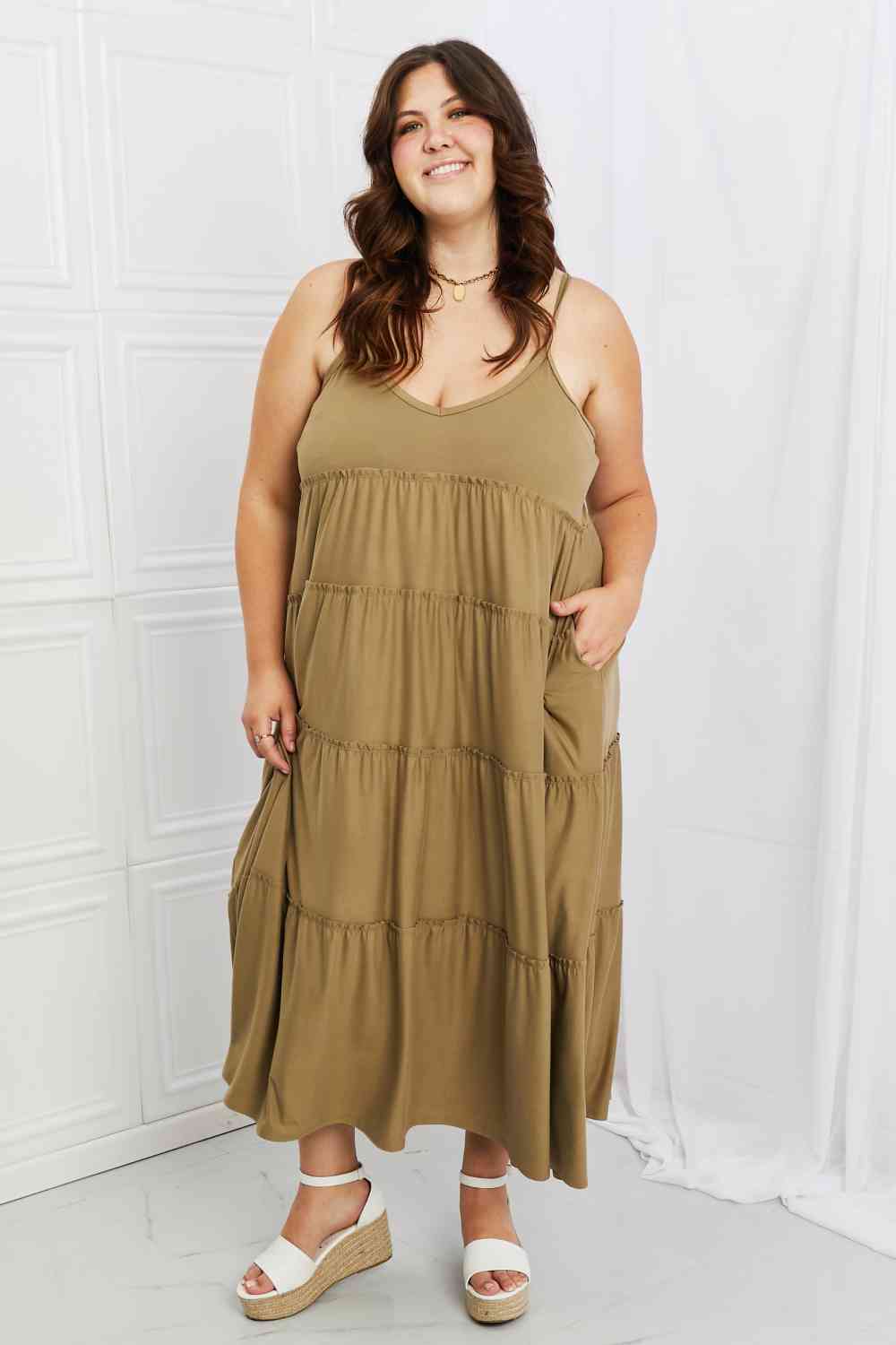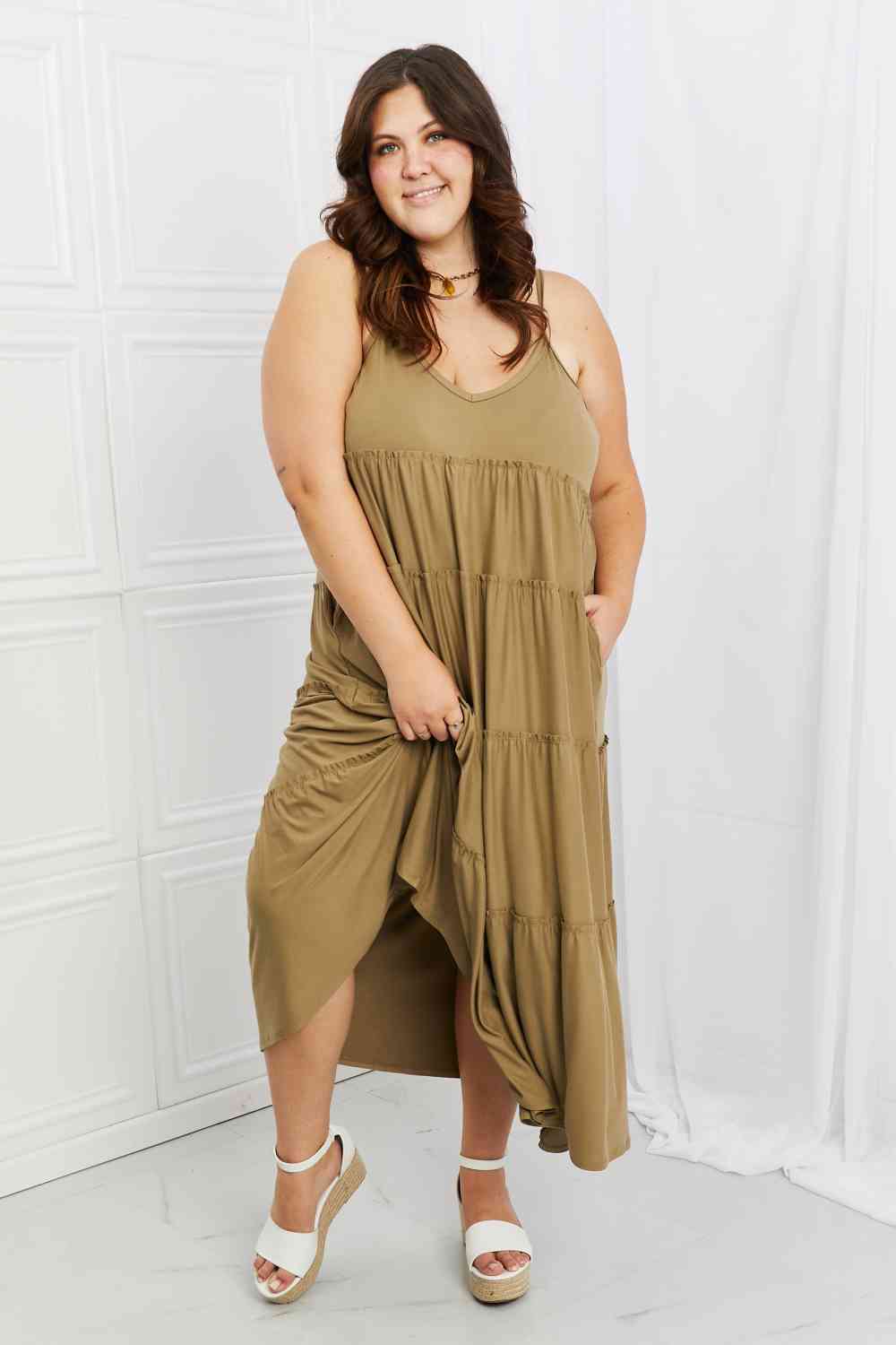 This spaghetti strap tiered dress is a casual and chic must-have for any day-to-night outfit. Featuring a tiered design, pockets, and a plunging v-neckline, pair with sandals and a cross-body bag for effortless style.
