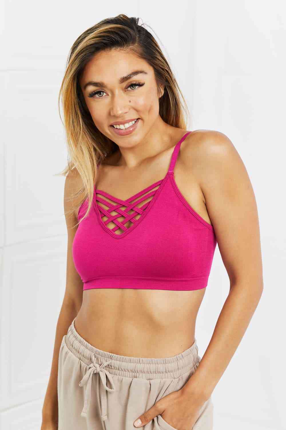 This bralette features a stunning lattice design on the front, creating a unique and eye-catching look that's sure to turn heads. The V-neckline adds a touch of femininity, while the adjustable straps ensure a customizable fit that's tailored to your body. One of the key features of this bralette is the removable bra pads, which allow you to customize the level of support you need. Whether you prefer a little extra padding or a more natural look, the choice is yours. The pads are also easy to remove and re-insert, making it a breeze to wash and maintain the bralette.
